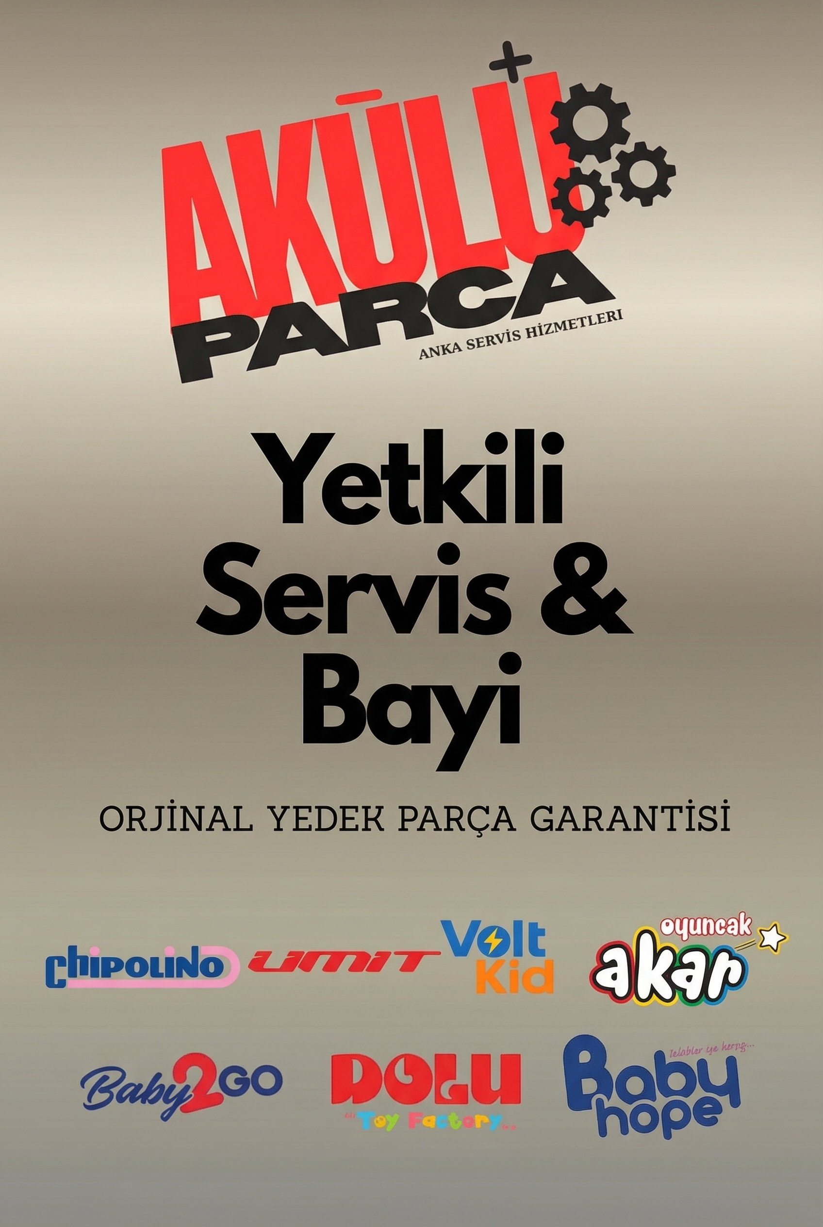 ONLİNE ALIŞVERİŞ MAĞAZAMIZAnka Servis olarak akülü çocuk araçları sektöründe edindiğimiz tecrübe ve güçlü teknik altyapımız ile Türkiye’de faaliyet gösteren birçok markanın yetkili servis hizmetini sunmaktayız. Sektördeki güvenilirliğimiz sayesinde ülkemizde bulunan çok sayıda markanın servis, bakım ve teknik destek süreçlerinde aktif olarak görev almaktayız. Aynı zamanda akülü araç ve oyuncak sektöründe faaliyet gösteren büyük perakende zincirleri ile de iş birliği içerisinde çalışmaktayız. Başta E-Bebek, Toyzz Shop, Civil, Babymall, A101, BİM ve Ampagros gibi mağazalar aracılığıyla satışa sunulan birçok ürünün servis ve teknik destek süreçlerinde hizmet vermekteyiz. Bizi tercih etmeniz için başlıca nedenler: ✔ Türkiye genelinde birçok markanın yetkili servis deneyimi ✔ Büyük perakende mağazaları ile aktif servis iş birlikleri ✔ Orijinal yedek parça kullanımı ✔ Uzman teknik ekip ve hızlı çözüm ✔ Uygun fiyatlı ve güvenilir servis hizmeti Amacımız, müşterilerimize akülü çocuk araçları konusunda güvenilir, hızlı ve profesyonel bir servis deneyimi sunmaktır.
